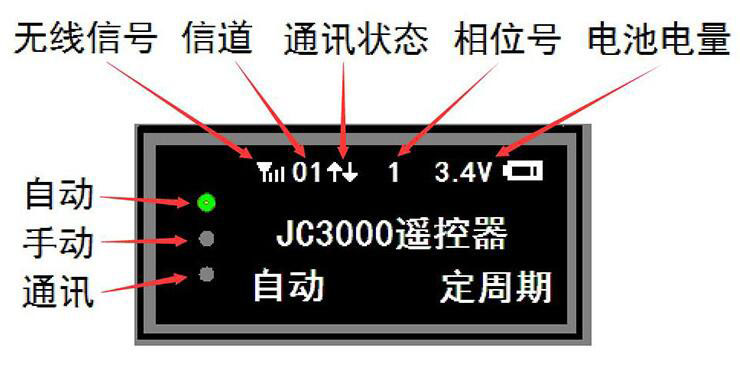 電源指示 | 自動(dòng)/手動(dòng) | 無線發(fā)送 | 主控發(fā)送 | 運(yùn)行狀態(tài) |