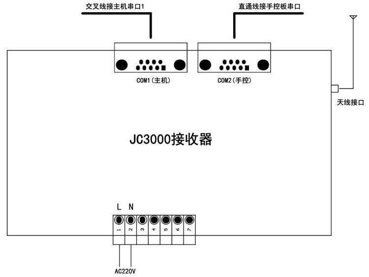● 將接收器安裝于信號(hào)機(jī)箱內(nèi)合適位置,并將對(duì)應(yīng)端子連接到信號(hào)機(jī)指定接口上(COM1接主機(jī),COM2接手控板),接好AC220V電源;